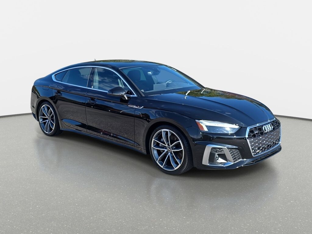 Mythos Black Metallic 2023 Audi A5 Sportback 45 S line Premium Plus quattro 7-Speed Automatic S tronic 2.0L 4-Cylinder TFSI quattro CARFAX One-Owner. Clean CARFAX. 2 Rear USB Charge Ports, Audi Active Lane Assist, Audi Connect PLUS, Audi Phone Box, Audi Virtual Cockpit Plus, Bang & Olufsen Sound System w/3D Sound, Brushed Aluminum Inlays, Convenience Package, Hands-On Detection Steering Wheel, Leather/Dinamica Seating Surfaces, Leatherette Covered Center Console & Door Armrests, MMI Navigation Plus, Navigation Package, Power Folding Exterior Mirrors, Premium Plus, S-Line Interior Package, Stainless Steel Pedal Caps, Top View Camera System, Traffic Jam Assist.