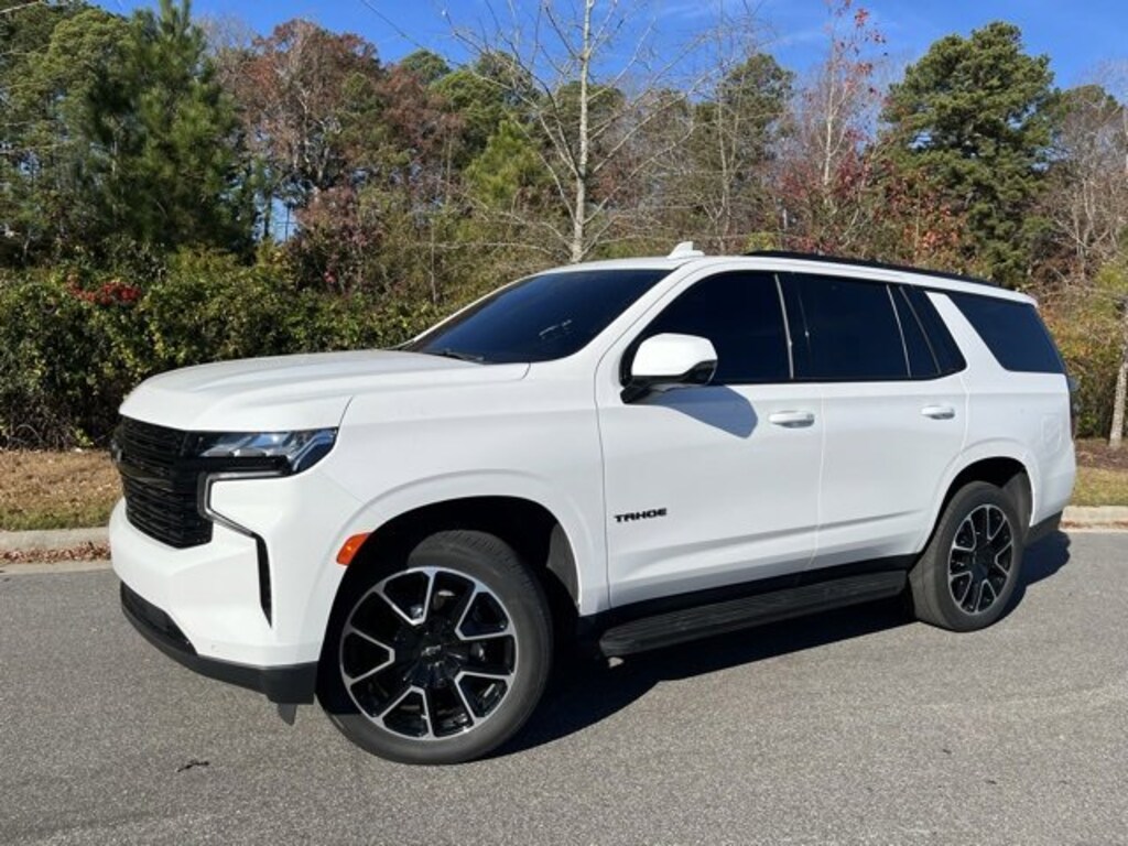 Clean CARFAX. CARFAX One-Owner. Summit White 2023 Chevrolet Tahoe RST RWD 10-Speed Automatic with Overdrive EcoTec3 5.3L V8 Jet Black/Victory Red Leather, 1st & 2nd Row Color-Keyed Carpeted Floor Mats, 2nd Row Pwr Release 60/40 Split-Folding Bench Seat, 3rd Row 60/40 Power-Folding Split-Bench Seat, Adaptive Cruise Control, Advanced Trailering Package, Auto-Dimming Inside Rear-View Mirror, Bose 9-Speaker Stereo Audio System Feature, Bright Front & Rear Door Sill Plates, Color-Keyed Carpeting Floor Covering, Driver & Front Outboard Passenger Airbags, Driver Alert Package, Enhanced Automatic Emergency Braking, Enhanced Driver Information Center, Extra Capacity Cooling System, Floor Console w/Storage Area, Hands-Free Rear Power Programmable Liftgate, HD Surround Vision, Heated 2nd Row Outboard Seats, Heated Steering Wheel, Infotainment Display, LED Daytime Running Lamps, Luxury Package, Max Trailering Package, Memory Settings, Memory Settings for Driver, Navigation System, Outside Heated Power-Adjustable Mirrors, Power Tilt & Telescopic Steering Column, Preferred Equipment Group 1SP, Rear Pedestrian Alert, Remote Start, SiriusXM Radio w/360L, Universal Home Remote, Wireless Charging, Wrapped Steering Wheel.