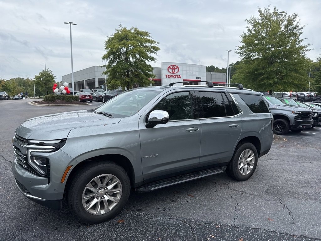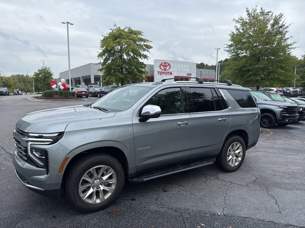 CARFAX One-Owner. Sterling Gray Metallic 2025 Chevrolet Tahoe Premier 4WD 10-Speed Automatic with Overdrive EcoTec3 5.3L V8 LOCAL TRADE IN, BACK UP CAMERA, LEATHER, HEATED SEATS, NAVIGATION, THIRD ROW SEAT, 4-WHEEL DRIVE, SMART KEY W PUSH BUTTON START, BLIND SPOT MONITOR W REAR CROSS-TRAFFIC ALERT, POWER LIFTGATE, MUST SEE TO APPRECIATE!, 4WD, Jet Black Leather, 10 Speakers, 1st & 2nd Row Color-Keyed Carpeted Floor Mats, 20 x 9 Polished Aluminum Wheels, 3-Spoke Wrapped Steering Wheel, 3rd Row 60/40 Power-Folding Split-Bench Seat, 4-Way Power Driver Lumbar Seat Adjuster, ABS brakes, Adaptive suspension, Air Conditioning, Auto High-beam Headlights, Auto-Dimming Inside Rear-View Mirror, Bose 10-Speaker Centerpoint Surround Audio Sys Ft, Bright Front & Rear Door Sill Plates, Chrome Door Handles w/Body-Color Strip, Chrome Mirror Caps, Color-Keyed Carpeting Floor Covering, Dual Exhaust System, Electronic Stability Control, Floor Console, Four wheel independent suspension, Front dual zone A/C, Front LED Fog Lamps, Front Pedestrian & Bicyclist Braking, Frontal Driver & Outboard Passenger Airbags, Fully automatic headlights, Garage door transmitter, Heated 2nd Row Outboard Seats, Heated door mirrors, Heated Driver & Front Passenger Seats, Heated Steering Wheel, Heated steering wheel, LED Headlamps w/LED Daytime Running Lamps, LED Tail Lamps, Magnetic Ride Control Suspension, Memory seat, Memory Settings, Navigation system: Google built-in compatibility (select service plan required, terms and limitations apply), Outside Heated Power-Adjustable Mirrors, Power driver seat, Power Release 2nd Row Bucket Seats, Power Tilt & Telescopic Steering Column, Preferred Equipment Group 1LZ, Rear air conditioning, Rear Power Liftgate, Remote Start, SiriusXM w/360L Trial Subscription, Steering wheel mounted audio controls, Telescoping steering wheel, Turn signal indicator mirrors, Universal Home Remote, Wireless Phone Charging.