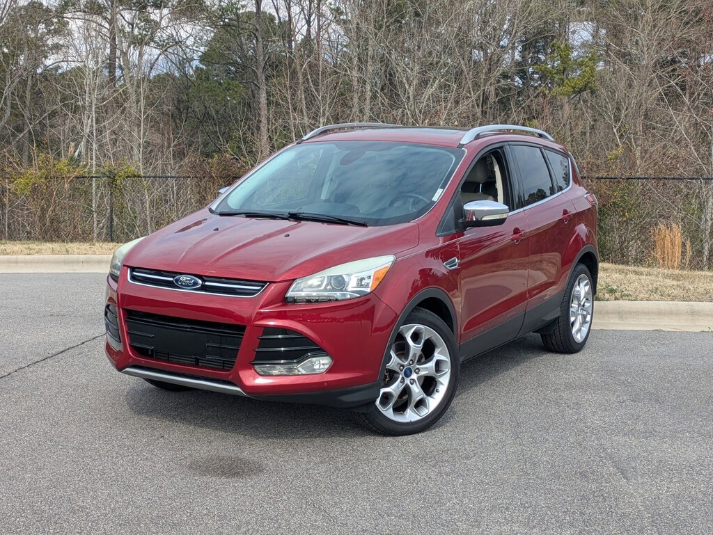 Clean CARFAX. Ruby Red Tinted Clearcoat 2014 Ford Escape Titanium FWD 6-Speed Automatic EcoBoost 2.0L I4 GTDi DOHC Turbocharged VCT LOCAL TRADE IN, BACK UP CAMERA, LEATHER, HEATED SEATS, POWER LIFTGATE, MEMORY SEAT, HOMELINK GARAGE DOOR TRANSMITTER, REAR PARKING SENSORS, 10 Speakers, ABS brakes, AM/FM radio: SiriusXM, Auto-dimming Rear-View mirror, Automatic temperature control, Compass, Exterior Parking Camera Rear, Four wheel independent suspension, Front dual zone A/C, Fully automatic headlights, Heated front seats, Illuminated entry, Leather Shift Knob, Memory seat, Power Liftgate, Rear Parking Sensors, Split folding rear seat, Steering wheel mounted audio controls, Traction control, Turn signal indicator mirrors, Wheels: 18" Sparkle Nickel Painted Aluminum.