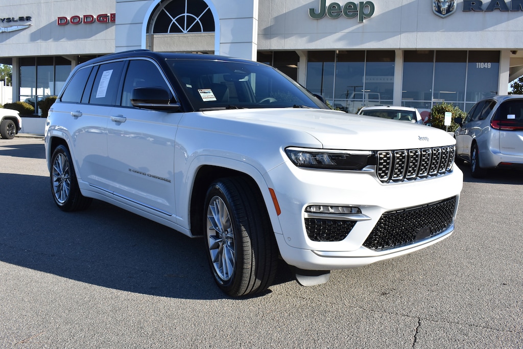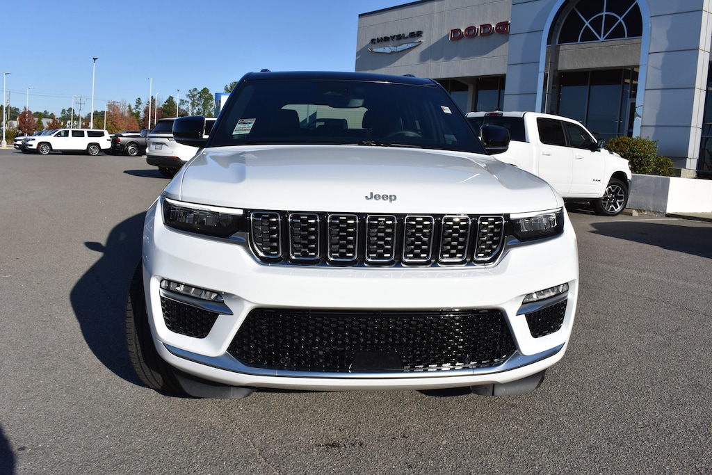 Clean CARFAX. CARFAX One-Owner. Bright White Clearcoat 2025 Jeep Grand Cherokee Summit 4WD 8-Speed Automatic 3.6L V6 24V VVT 10 Speakers, 4-Wheel Disc Brakes, ABS brakes, Active Noise Control System, Adaptive suspension, Air Conditioning, Alloy wheels, AM/FM radio: SiriusXM with 360L, Anti-whiplash front head restraints, Audio memory, Auto High-beam Headlights, Auto-dimming door mirrors, Auto-dimming Rear-View mirror, Auto-leveling suspension, Automatic temperature control, Auxiliary Battery, Brake assist, Bumpers: body-color, Compass, Delay-off headlights, Dual front impact airbags, Dual front side impact airbags, Electronic Stability Control, Emergency communication system, Four wheel independent suspension, Front anti-roll bar, Front dual zone A/C, Front fog lights, Fully automatic headlights, Garage door transmitter, Genuine wood dashboard insert, Genuine wood door panel insert, Heated door mirrors, Heated front seats, Heated rear seats, Heated steering wheel, Illuminated entry, Knee airbag, Leather steering wheel, Low tire pressure warning, Memory seat, Model Year Tracking, Nappa Leather Seats, Navigation System, Normal Duty Suspension, Occupant sensing airbag, Outside temperature display, Overhead airbag, Overhead console, Panic alarm, Power door mirrors, Power driver seat, Power Liftgate, Power moonroof, Power passenger seat, Power steering, Power windows, Quick Order Package 23S, Radio data system, Radio: Uconnect 5 Nav w/10.1" Display, Rain sensing wipers, Rear air conditioning, Rear anti-roll bar, Rear dual zone A/C, Rear window defroster, Rear window wiper, Remote keyless entry, Security system, Speed control, Speed-Sensitive Wipers, Split folding rear seat, Spoiler, Steering wheel memory, Steering wheel mounted audio controls, Tachometer, Telescoping steering wheel, Tilt steering wheel, Traction control, Trip computer, Turn signal indicator mirrors, Variably intermittent wipers, Ventilated front seats, Voltmeter, Wheels: 20" x 8.5" Fully Painted Aluminum Silver.