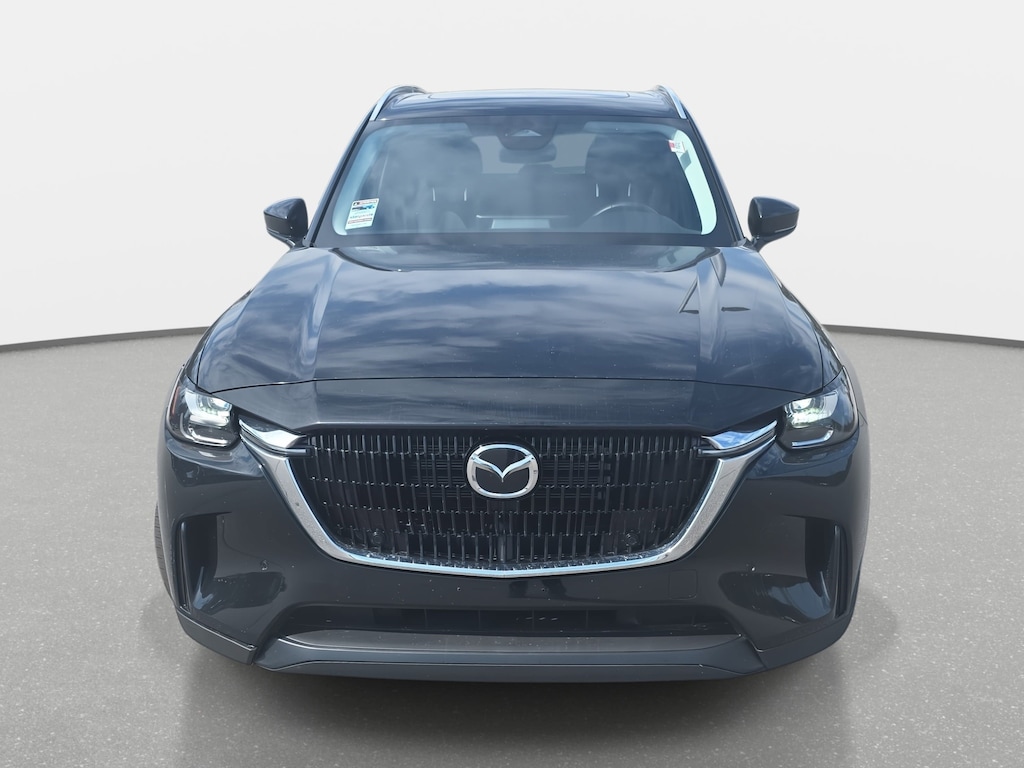 Jet Black Mica 2025 Mazda CX-90 3.3 Turbo Preferred AWD 8-Speed Automatic I6 Turbo 3rd row seats: bench, 4-Wheel Disc Brakes, 8 Speakers, ABS brakes, Air Conditioning, Alloy wheels, AM/FM radio, Auto High-beam Headlights, Automatic temperature control, Brake assist, Bumpers: body-color, Compass, Delay-off headlights, Dual front impact airbags, Dual front side impact airbags, E911 Automatic Emergency Notification, Electronic Stability Control, Emergency communication system: MAZDA CONNECT, Exterior Parking Camera Rear, Four wheel independent suspension, Front anti-roll bar, Front Center Armrest w/Storage, Front dual zone A/C, Fully automatic headlights, Heated door mirrors, Heated Front Bucket Seats, Heated front seats, Illuminated entry, Infotainment System Voice Command, Knee airbag, Leather Seat Trim, Leather Shift Knob, Leather steering wheel, Low tire pressure warning, Mazda Connected Services, Occupant sensing airbag, Outside temperature display, Overhead airbag, Overhead console, Pandora Internet Radio Integration, Panic alarm, Passenger door bin, Power door mirrors, Power driver seat, Power Liftgate, Power moonroof, Power passenger seat, Power steering, Power windows, Radio Broadcast Data System Program Information, Radio data system, Radio: AM/FM w/HD/8-Speaker Sound System, Rain sensing wipers, Rear air conditioning, Rear anti-roll bar, Rear reading lights, Rear window defroster, Rear window wiper, Remote keyless entry, SMS Text Msg Audio Delivery & Reply, Speed control, Speed-sensing steering, Split folding rear seat, Spoiler, Steering wheel mounted audio controls, Tachometer, Telescoping steering wheel, Tilt steering wheel, Traction control, Trip computer, Turn signal indicator mirrors, Variably intermittent wipers, Wheels: 19" x 8.5J Aluminum Alloy.