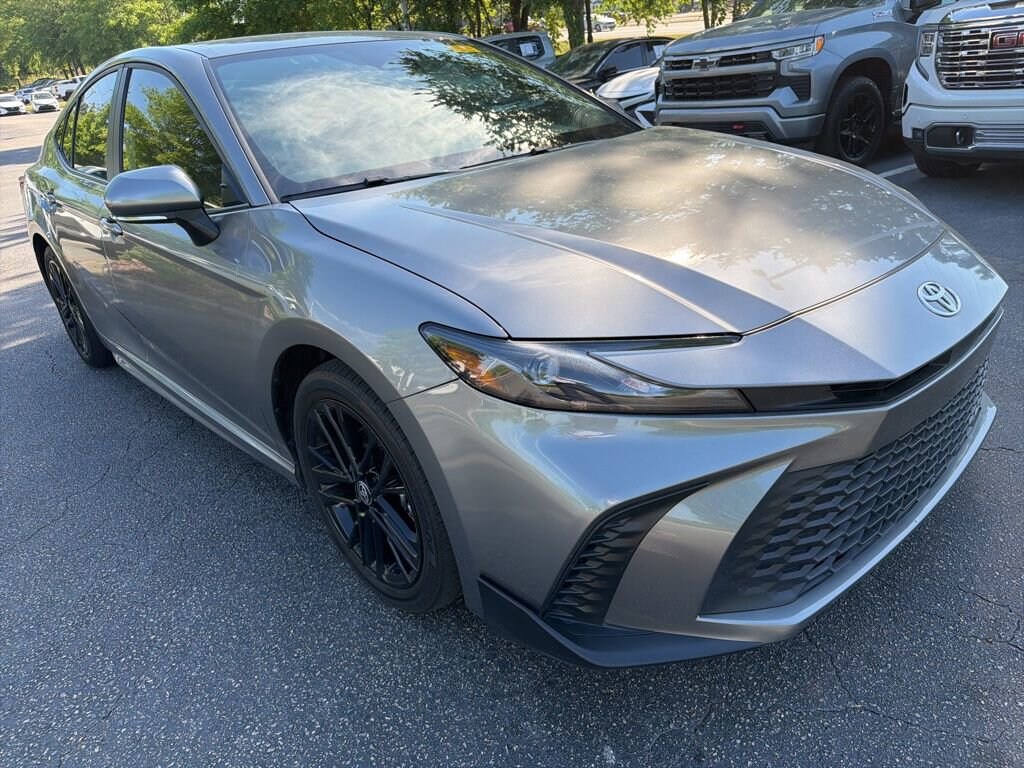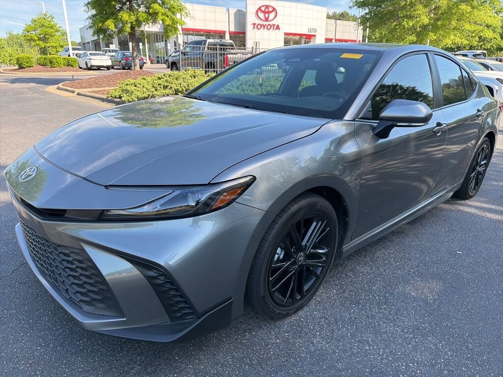 CARFAX One-Owner. Heavy Metal 2025 Toyota Camry SE FWD eCVT 2.5L 4-Cylinder 16V DOHC LOCAL TRADE IN, BACK OF CAMERA, LEATHER, SMART KEY W PUSH BUTTON START, PRE-COLLISION SYSTEM W PEDESTRIAN DETECTION, FULL-SPEED RANGE DYNAMIC RADAR CRUISE CONTROL, LANE DEPARTURE ALERT W STEERING ASSIST, BLIND SPOT MONITOR W REAR CROSS-TRAFFIC ALERT, APPLE CARPLAY & ANDROID AUTO, MUST SEE TO APPRECIATE!, 2.5L 4-Cylinder 16V DOHC, Black w/SofTex and Fabric Seat Trim, ABS brakes, Air Conditioning, Auto High-beam Headlights, Automatic temperature control, Convenience Package, Electronic Stability Control, Exterior Parking Camera Rear, Four wheel independent suspension, Front Bucket Seats, Front dual zone A/C, Fully automatic headlights, Leather steering wheel, Power driver seat, Power steering, Power windows, Radio: Toyota Audio Multimedia w/8 Touchscreen, Rear reading lights, Rear seat center armrest, Rear window defroster, Remote keyless entry, Smart Key System, SofTex & Fabric Seat Trim, Speed-sensing steering, Steering wheel mounted audio controls, Telescoping steering wheel, Traction control, Turn signal indicator mirrors, Wheels: 18 Black-Finished Alloy.